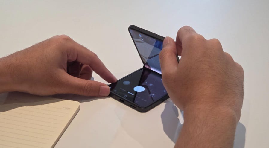 Fleksibilitas sudut lipatan ini juga membuat multitasking jadi lebih nyaman. Tata letak aplikasi otomatis menyesuaikan posisi lipatan, sehingga kontrol kamera, pemutar video, atau catatan jadi lebih mudah dijangkau. Kamu bisa menonton sambil mencatat, atau mengecek hasil rekaman sambil mempertahankan framing yang stabil.