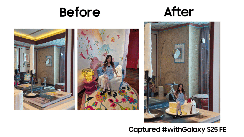 Selain kamera, Galaxy S25 FE juga dibekali fitur Galaxy AI yang bikin proses editing jadi jauh lebih seru. Salah satu yang jadi favorit Marveline Grace adalah Generative Edit. Fitur ini memungkinkan pengguna untuk melakukan banyak hal: menghapus objek yang mengganggu, menambahkan elemen baru, sampai menghadirkan versi kloning diri sendiri dalam satu frame.