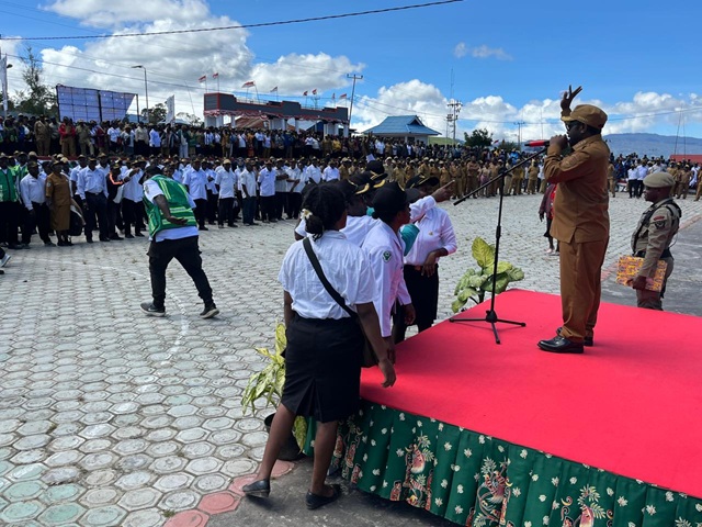 Deiyai, 26 November 2025 – Pemerintah Kabupaten Deiyai menggelar upacara bendera memperingati Hari Ulang Tahun (HUT) ke-17 Kabupaten Deiyai yang berlangsung khidmat di Halaman Kantor Bupati, Waghete, Rabu (26/11).