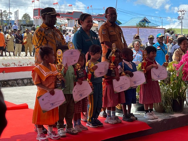Acara semakin meriah saat Bupati memberikan kuis seputar sejarah dan tokoh penting Deiyai, disertai hadiah bagi peserta yang menjawab benar.