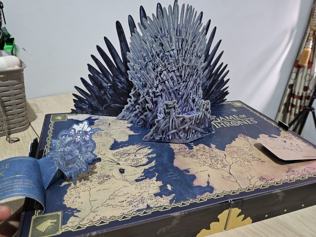 Berisikan Iron Throne Phone Stand, surat perkamen misterius, pin King’s Hand, serta set photo card dan stiker, yang membuat para penggunanya terbenam dalam dunia Game of Thrones langsung saat boks dibuka.