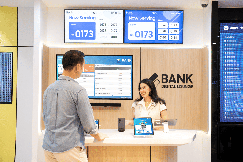 · Zona Digital Banking menyediakan alur kerja lini depan yang lebih baik. Layanan digital yang intuitif dan interaktif, seperti layar interaktif dan aplikasi mobile Samsung, dapat meningkatkan kepuasan pelanggan dengan menyediakan informasi yang mudah diakses dan transaksi yang cepat. Solusi seperti Knox Suite dan perangkat keras Samsung yang dilengkapi dengan fitur keamanan canggih menjamin perlindungan data pelanggan dan transaksi, memperkuat kepercayaan pelanggan terhadap bank.