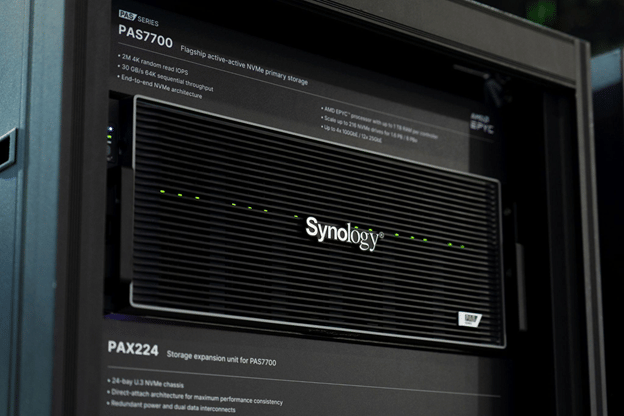 Selain solusi perlindungan data, Synology juga memperkenalkan PAS7700, media penyimpanan untuk perusahaan enterprise, dengan dukungan arsitektur NVMe secara keseluruhan mencapai hingga 2 juta Input/Output Operations (IOPS) per detik, dan 30 GB/s dengan latensi di bawah 1 milisekon. Rancangan arsitektur yang simultan memungkinkan penyediaan solusi berkelanjutan, sementara enkripsi kuat dan performa enterprise menjadikannya ideal untuk workload yang vital.